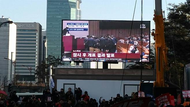 | ▲ 박근혜 대통령 탄핵 2016년 12월 9일, 국회에서 박근혜 대통령 탄핵 소추안 표결을 하고 있다. 이날 국회의원 234명 찬성으로 박근혜 대통령 탄핵이 가결되었다. |