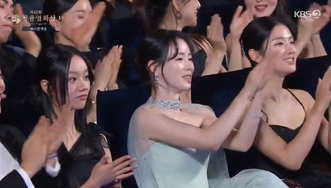 아버지로서의 책임감을 드러낸 정우성의 발언에 객석에선 응원의 박수가 터져 나왔고, 화면엔 임지연 박주현 이정하 등 후배 배우들이 응원을 보내는 장면이 포착됐다.
