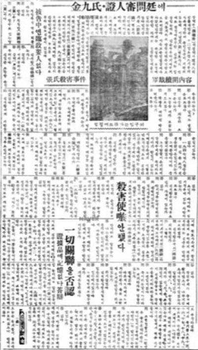 | ▲ <경향신문> 1948년 3월 13일 자 기사 '金九氏(김구씨)·證人審問廷(증인심문정)에' |
