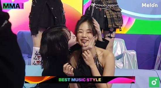 올해 '밤양갱'으로 많은 사랑을 받은 비비는 이날 베스트 뮤직 스타일상을 받았다. 비비의 이름이 호명되자, 그룹 트리플에스 멤버로 활동 중인 비비의 친동생 김나경이 비비의 볼에 뽀뽀를 하는 모습이 포착됐다.