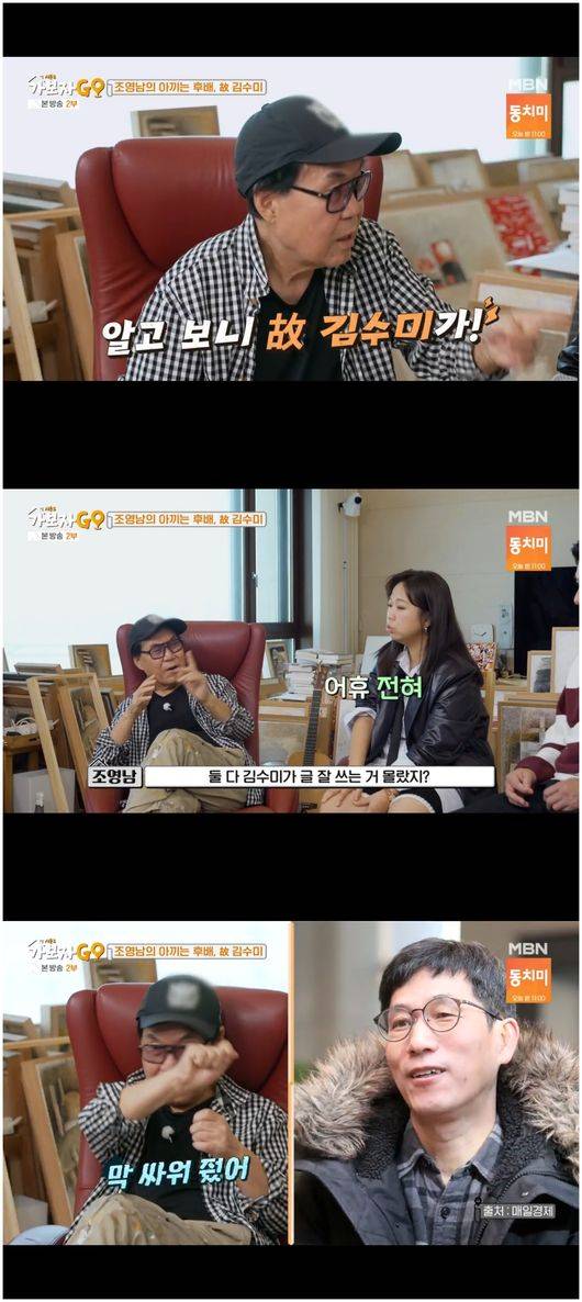 이어 조영남은 “김수미 선생이 글 잘 쓰는 거 몰랐지”라면서 “나 미술 재판 났을 때 진중권 교수가 글을 써 줬다”라고 말했다.