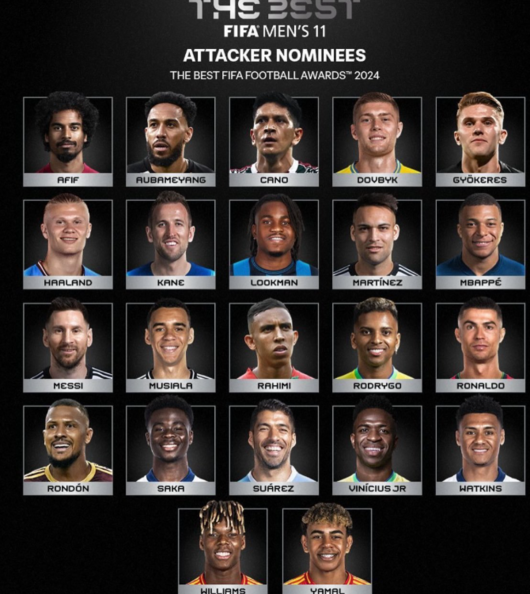 지난 시즌 유럽 축구서 맹활약한 손흥민(토트넘)이나 모하메드 살라(리버풀), 로베르트 레반도프스키(FC 바르셀로나) 등이 못 들어간데 비해서 크리스티아누 호날두(알 나스르), 리오넬 메시(인터 마이애미), 루이스 수아레즈(인터 마이애미) 같은 노장들이 들어갔다.