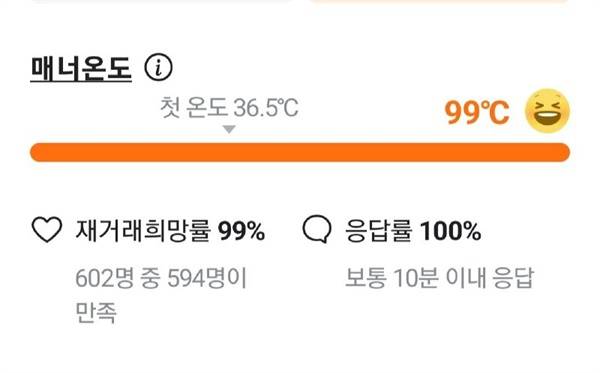 | ▲ 매너온도 99도와 거래라니. 이 정도 온도면 믿고 거래할 수 있지 않을까. |