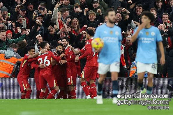 리버풀은 1일(현지시간) 영국 리버풀 안필드에서 열린 맨시티와 2024/25 프리미어리그 13라운드 홈경기에서 코디 각포와 살라의 골을 묶어 2-0으로 승리했다.