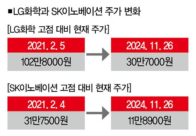 실제로 LG에너지솔루션과 SK온을 물적분할해 재상장한 LG화학과 SK이노베이션의 현재 주가는 물적분할 당시 고점 대비 3분의 1, 2분의 1 수준으로 떨어졌습니다. 이재명 대표가 상법 개정을 강조하면서 "엄마소는 내 소인데, 송아지는 다른 사람이 가져가는 건 말이 안 된다"고 주장했던 것도 그래서죠. 이럴 때 상법이 개정안대로 바뀐다면 기존 주주들은 두 회사의 이사들을 상대로 소송을 제기할 수 있습니다.