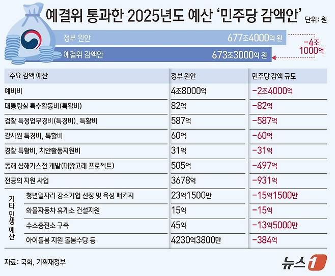 [그래픽] 예결위 통과한 2025년도 예산 ‘민주당 감액안’