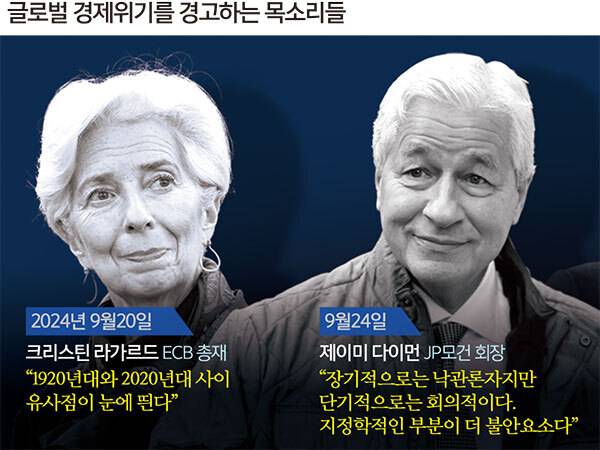 글로벌 경제를 이끄는 투자자들과 석학들이 미 대선 이전부터 글로벌 경기침체 가능성을 지속해서 경고해왔다. 지난해부터 침체 가능성을 제기해온 제이미 다이먼 JP모건 회장은 지난 9월 인터뷰를 통해 “장기적으로는 세계 경제에 대해 낙관론자이지만 단기적으로는 회의적”이라고 밝혔다. 특히 그는 당시 격화되던 중동문제, 우크라이나전쟁 등이 세계 경제의 발목을 잡을 가능성을 거론하며 “지정학적인 부분은 더 불안요소”라고 지적하기도 했다.