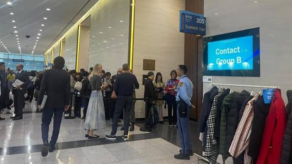 | ▲ 지난 11월 27일 한 회의실 앞에서 참관인들이 수용인원 부족으로 들어가지 못해 줄을 서있는 모습. |