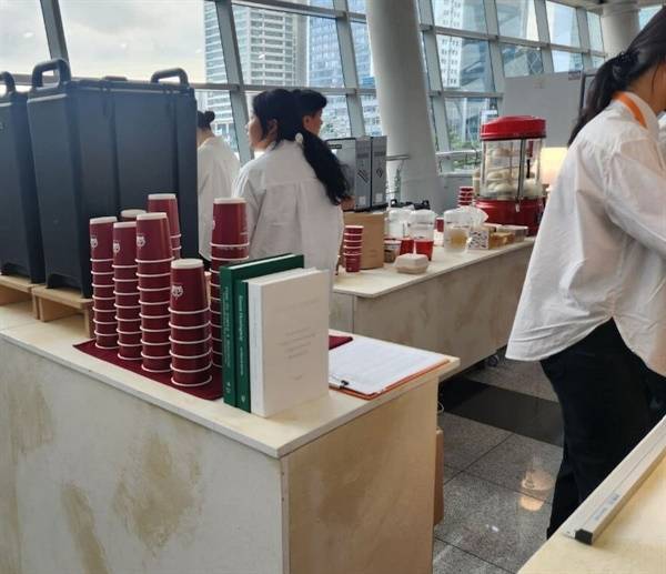 | ▲ 플라스틱 국제협약 제5차 정부간협상위원회(INC-5)가 진행되는 협상장 안에서 운영되던 카페. 모든 식기가 플라스틱이 코팅된 일회용품으로 제공됐다. |