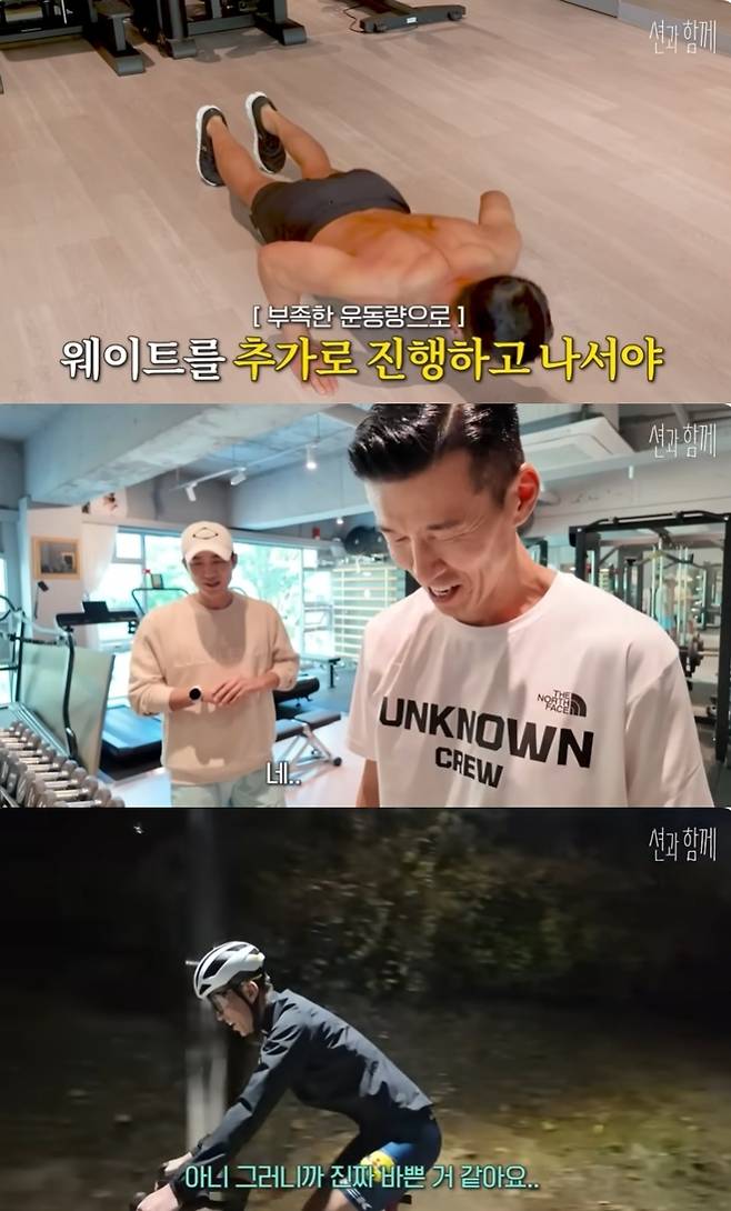 바쁜 하루를 마치고 돌아온 션은 저녁 라이딩에 나섰다. "진짜 바쁠 때도 라이딩을 하냐"는 질문에 션은 "잠깐 10분이라고 나가서 뛰고 오고, 팔굽혀펴기는 아무 데서나 할 수도 있으니까 강연 갔다가 대기실에서 하기도 한다"며 "하루를 바쁘게 보내니까 스트레스가 들어올 틈이 없다"고 자랑했다.