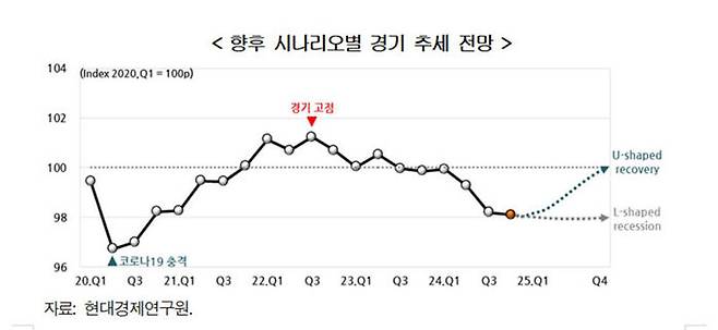 연구원은 "하지만 위험 요인들이 현실화하면서 수출 경기가 경착륙하는데 내수 부양 모멘텀마저 없는 경우에는 장기간 불황 국면이 지속되는 'L'자형 장기 불황 시나리오가 유력하다"고 경고했습니다.