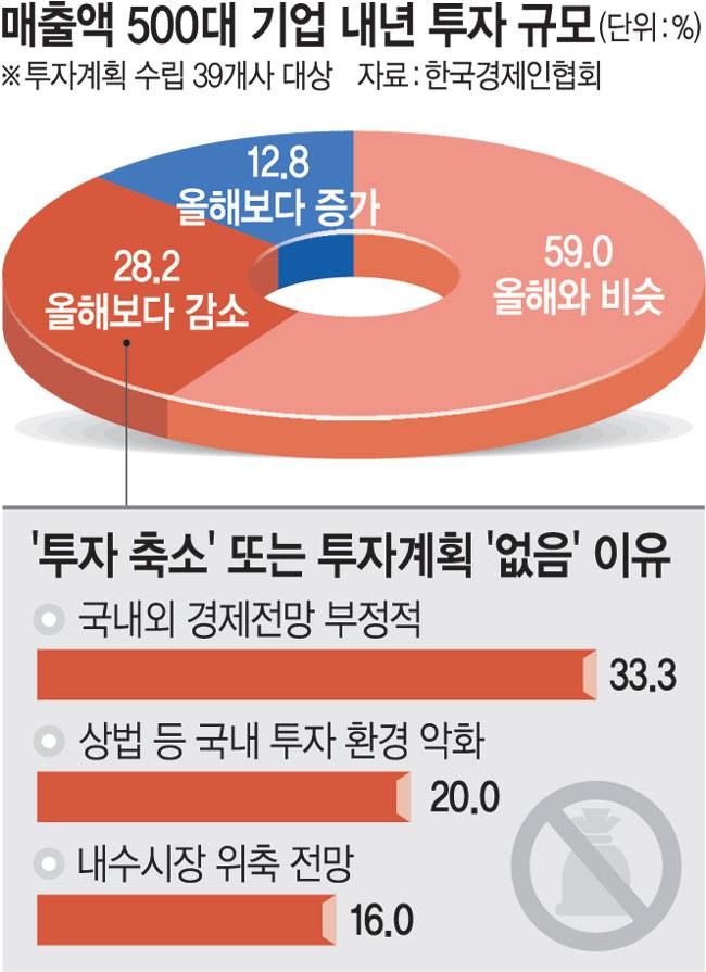 국내 기업들 “국내외 경제전망 나빠 투자 축소” 33%… “규제강화 탓” 20%