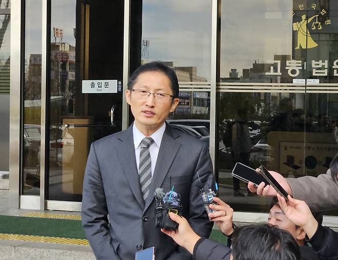 | ▲ 재심전문 박준영 변호사가 3일 광주고등법원에서 열린 '순천 청산가리 막걸리 사건' 재심 첫 재판 후 기자들에게 입장을 밝히고 있다. 2024. 12. 3 |