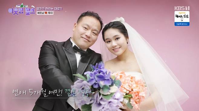 투이 씨는 '결혼을 직접 OK한 거냐'는 제작진 질문에 "나는 OK 안 했다. 다 엄마가 OK했다. 엄마가 (결혼)하라면 하는 거고, 하지 말라면 안 하는 것"이라며 "베트남에선 대부분 엄마, 아빠 뜻에 따라 결혼한다"고 설명했다.