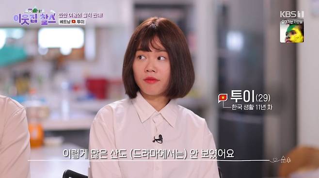 투이 씨는 "(한국이) 드라마에선 엄청 좋아보였다. 산도 없었는데, 막상 와보니 베트남이랑 똑같구나 생각이 들었다"며 "논도 있고, 다 있었다. 그래서 적응이 더 쉬웠다"고 말했다.