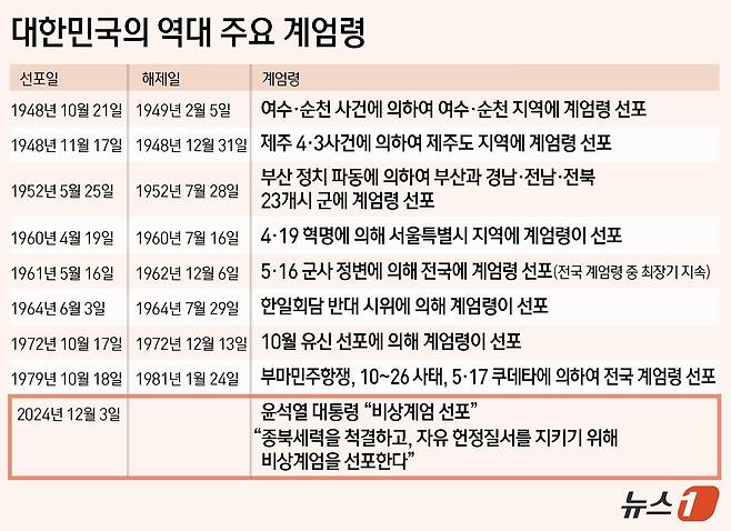 [그래픽] 대한민국의 역대 주요 계엄령