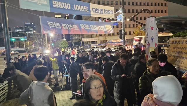 계엄령을 선포한 지 1시간 반이 지난 4일 자정에는 수십 명에 불과했던 시민이 어느새 수백 명으로 불어나 국회 앞 대로변을 가득 매웠다.