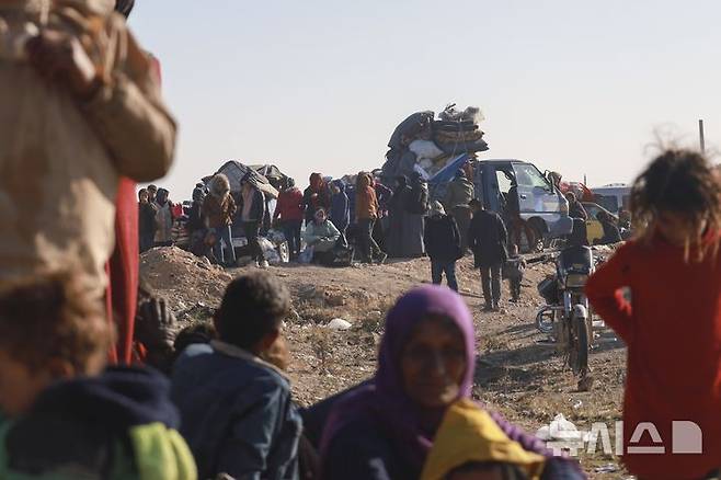 [라카=AP/뉴시스] 3일(현지시각) 시리아 북부 알레포에서 시리아 반군으로부터 대피한 쿠르드족이 라카에 있는 쿠르드족 거점 지역에 도착하고 있다. 이날 시리아 반군이 알레포 북부 텔리파트를 장악하자 수천 명의 쿠르드족 주민이 피란길에 올랐다. 2024.12.04.