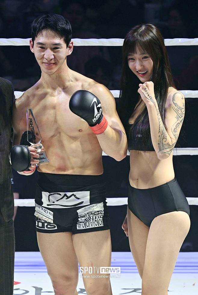 [포토] 격투기 데뷔전 승리한 밴쯔, 라운드걸 아니아-아이돌네이션과 함께