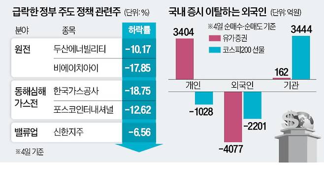 ○ 원전·밸류업 등 정책주 일제히 급락