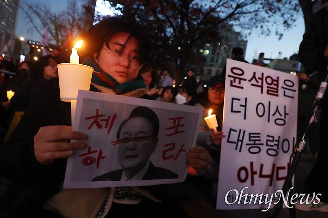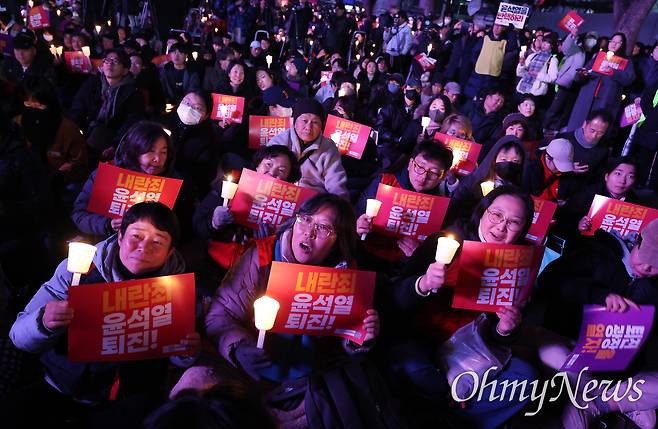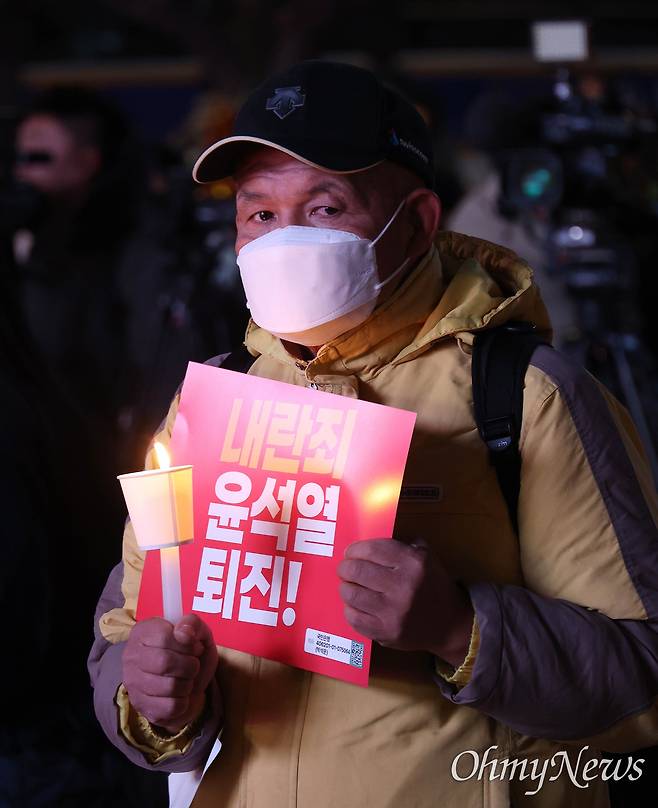 [오마이포토] '내란죄 윤석열 퇴진' 광화문 촛불 점화