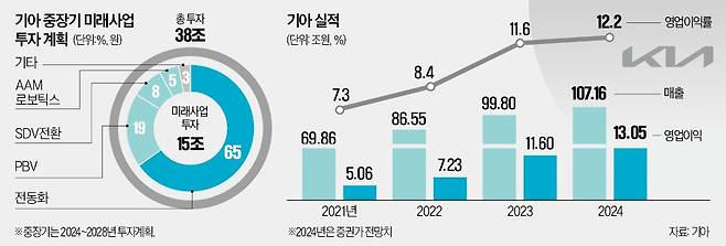 이런 송 사장의 결단력에 힘입어 기아는 사상 최대 실적을 분기마다 새로 쓰고 있다. 기아는 2022년 4분기 이후 여덟 분기째 두 자릿수 영업이익률을 기록 중이다. 지난 3분기 영업이익률은 10.9%로 전기차 최강자인 테슬라(10.8%)보다 높았다. 기아는 2021년부터 3년 연속 매년 사상 최대 이익 기록을 올렸다.