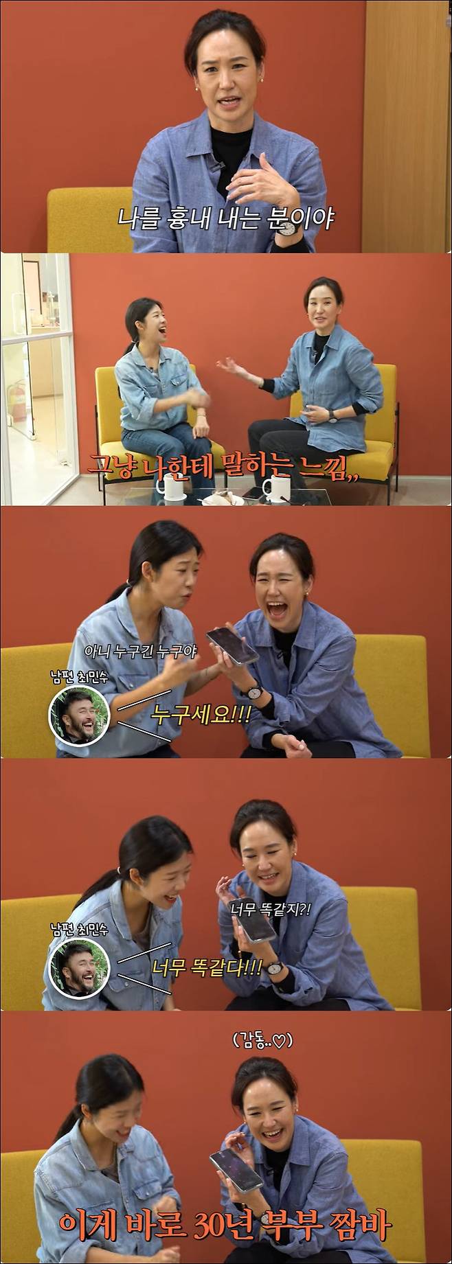 쓰복만과 통화를 하던 최민수는 의심의 여지 없이 자연스럽게 통화를 했다. 그러나 최민수는 곧 "지금은 언니(강주은)인데 방금 전에는 누구시냐"고 의심했다. 빵터진 최민수는 "처음에는 정말 속았어"라며 "너무 똑같다. 저 너무 잘 봤다. 저도 한번 뵙고 싶다"며 감탄했다. 최민수는 "처음에는 완전히 속았다. 하이톤으로 올라가고 내려가는 높낮이가 너무 커서 그때 좀 느꼈다. 그리고 우리 언니는 목소리로 사람의 마음을 마사지한다"고 말해 감동을 더했다.
