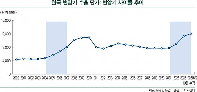 정혜정 KB증권 연구원은 “미국 정부의 관련 투자 프로그램의 꾸준한 집행 및 여전히 남아 있는 신규 신재생발전설비의 대기열 규모를 감안 시 미국 시장에서의 수요는 단기간에 꺾이지 않을 것”이라며 “한국의 미국에 대한 대형 변압기 수출 중량 및 단가 또한 올해 들어 각각 전년 동기 대비 41.2%, 14.1% 높다”고 설명했다.