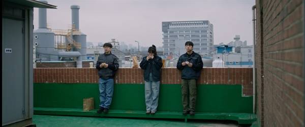 이 작품의 수많은 장면 가운데 꼭 하나 기억에 남는 순간이 있다. 공장으로 찾아온 담임 선생님과 창우가 면담을 끝내고 난 다음의 장면. 성민(김성국 분)과 다혜(김소완 분)와 함께 옥상 한구석에서 그가 사 온 햄버거를 먹으며 공단의 전경을 내려다보는 컷이다. 이 장면으로 인해 영화 <3학년 2학기>의 모든 이야기는 개인의 것이 아닌 전체의 이야기로 발전할 수 있게 된다. 세 사람이 바라보는 공단 내부만 하더라도 이들과 같은 상황에 처한 청년이 몇이나 될까? 하고 생각하게 되는 것이다.