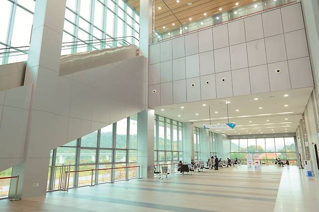 정문으로 발을 내디디면 가장 먼저 드는 생각은 ‘시원시원하다’는 것. 높은 층고와 넓은 공간, 그리고 통창으로 가득 들어오는 햇볕 덕분이다. 일반적으로 전시컨벤션센터에서는 동시에 여러 개의 행사가 열리다 보니, 방문객이 몰리는 시간에는 이동이 어려울 정도로 붐비기도 한다. 그러나 유에코는 넉넉한 공간 설계로 인파가 몰려도 답답하다는 느낌이 들지 않는다. 안전사고의 우려도 덜하다.