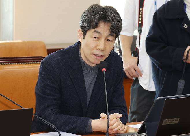 | ▲ 윤건영 더불어민주당(서울 구로구을) 의원이 5일 오전 서울 여의도 국회에서 열린 행정안전위원회 전체회의에서 윤석열 대통령의 비상계엄 선포 사태에 대해 조지호 경찰청장에게 질의하고 있다. |