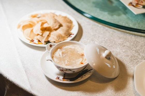 널리 알려진 이름과 달리 제비집은 사실 제비 둥지가 아니다. 흰집칼새의 둥지다. 흰집칼새는 제 입속에서 게워낸 희고 끈적한 침샘 분비물만으로 둥지를 짓는다. 이것을 채취해 깃털·배설물 같은 불순물을 핀셋으로 일일이 걷어낸 뒤 말려 식재료로 쓴다. 말린 둥지 1㎏이 100만원에 팔릴 정도로 비싸다. 르네상스 호텔의 광둥식 전문 ‘다이너스티’에서 게살을 가미한 295HKD(약 5만3000원)짜리 제비집 수프를 맛봤다. 둥지는 씹을 필요도 없이 목구멍을 타고 술술 넘어갔다. 맛은 잘 모르겠고, 그윽한 향이 입안에 오래 남았다.