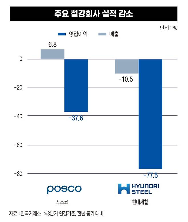 포스코는 지난 11월 19일 45년 넘게 가동해온 포항제철소 1선재공장을 전격 폐쇄했다. 지난 7월 포항 1제강공장 폐쇄에 이어 4개월여 만에 두 번째 셧다운 결정이다. 1제강공장은 1973년 준공돼 반세기 동안 약 9500만 톤의 조강을 생산하며 조선, 자동차, 가전 등 국내 제조업을 일궈 한국 경제의 밑거름이 됐지만 중국산 저가 밀어내기의 직격탄에 역사의 뒤안길로 사라졌다. 중국산 덤핑에 철강 양대산맥인 포스코와 현대제철은 실적 부진을 겪고 있다.