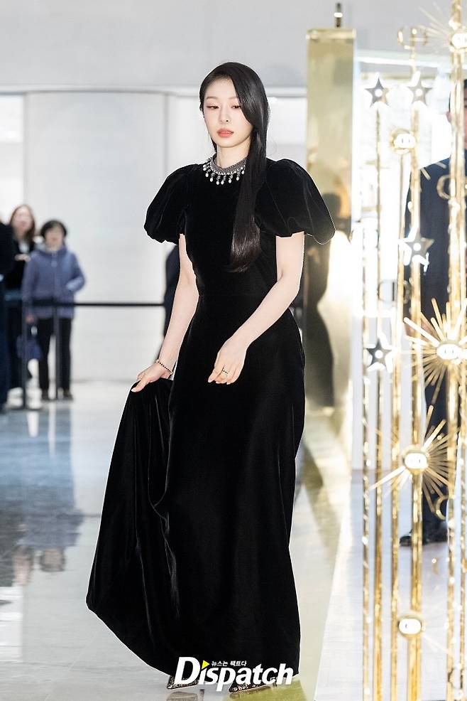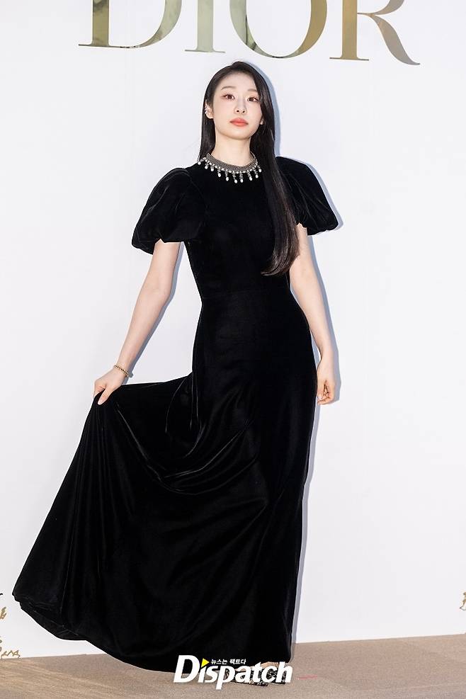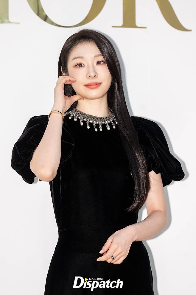 김연아는 퍼프 디테일이 돋보이는 블랙 롱드레스로 아름다운 자태를 뽐냈다.