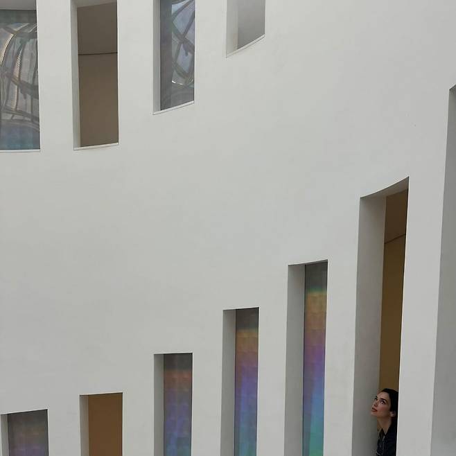 타고난 감각을 소유한 패션 아이콘답게 서울에서도 아트 모멘트를 선택한 두아. 리움미술관에 들른 두아는 이곳의 상징과도 같은 로툰다, 즉 나선형 원통 계단에서 인증샷을 남겼습니다. 올라퍼 엘리아슨의 〈중력의 계단〉 작품과 함께 포즈를 취하는 일도 잊지 않았고요.