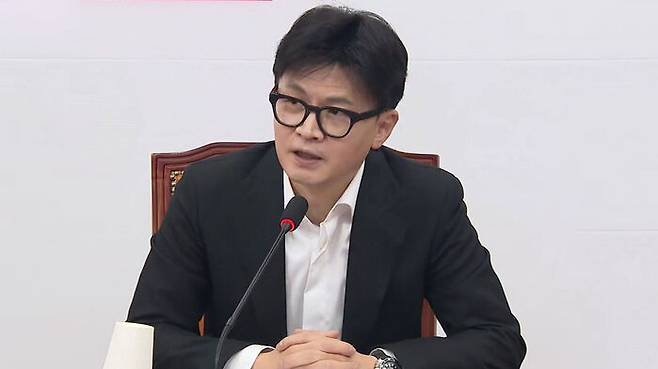 ▲ 국민의힘 한동훈 대표가 6일 오전 서울 여의도 국회에서 열린 긴급최고위원회의에서 발언하고 있다.