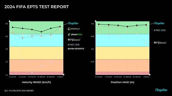 핏투게더는 이번 평가에서 피파 퀄리티(FIFA Quality) 마크를 획득한 웨어러블 EPTS 6개 기업 중 한 곳으로, 특히 범위별 각각 평가에서 속도와 위치 모두 Well-above가 나오면서 가장 우수한 평가를 받았다. 특히 RTK GPS 모델인 Y 뿐만 아니라 일반 모델인 x-live도 전 영역에서 Well-above가 나왔다는 점에서 우수한 기술력을 피파(FIFA)로부터 인증 받았다. 2024년 피파(FIFA) 품질 프로그램에는 핏투게더를 포함해 호주의 상장사인 캐터펄트(Catapult), 영국의 스탯스포츠(STATSports) 등 글로벌 스포츠테크 기업들이 참여했다.