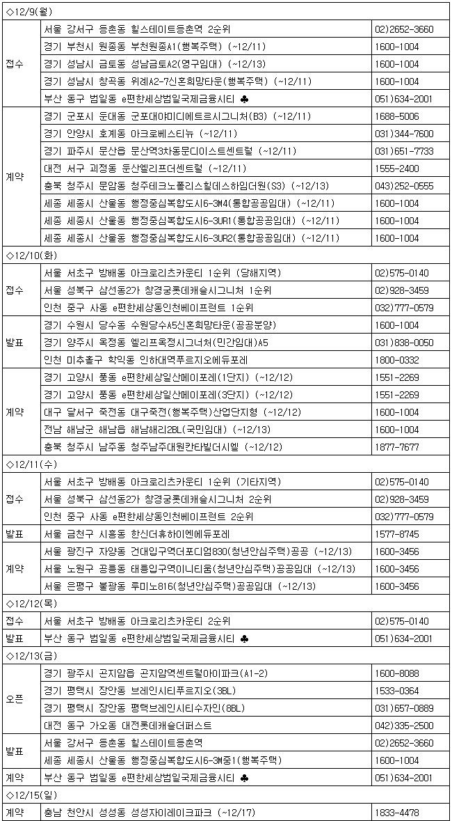 다음은 내주 주요 분양 일정.