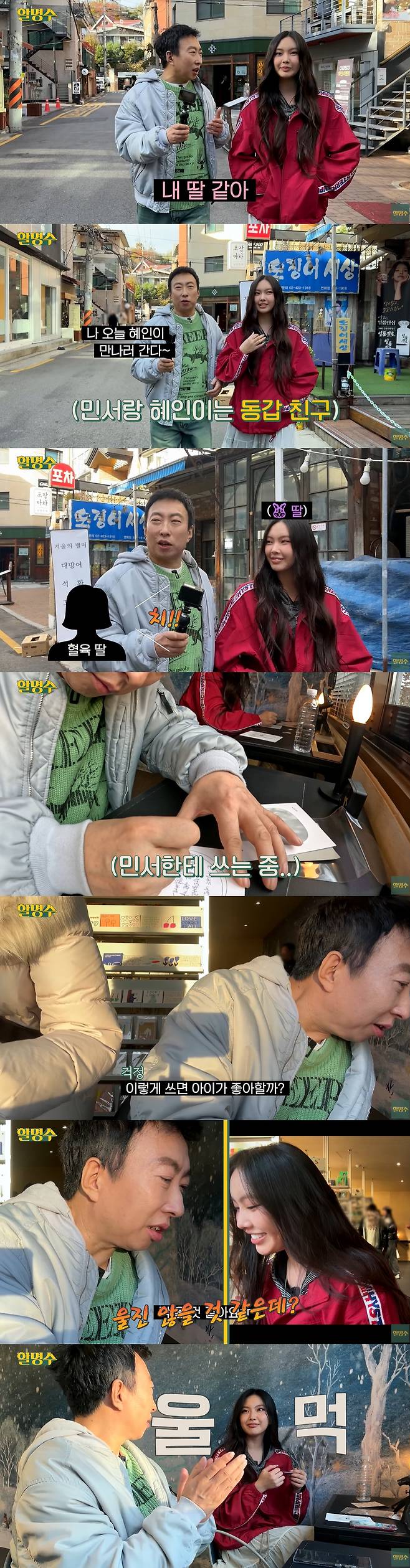 박명수는 "사실 난 혜인이가 연예인이고 이런 걸 떠나서 내 딸 같다. 왜냐하면 민서가 (혜인이와 동갑인) 고1이다"라며 "오늘 혜인이 만나러 간다고 했더니 '치!'하고 갔다"며 딸 민서가 질투했다고 전해 웃음을 자아냈다.