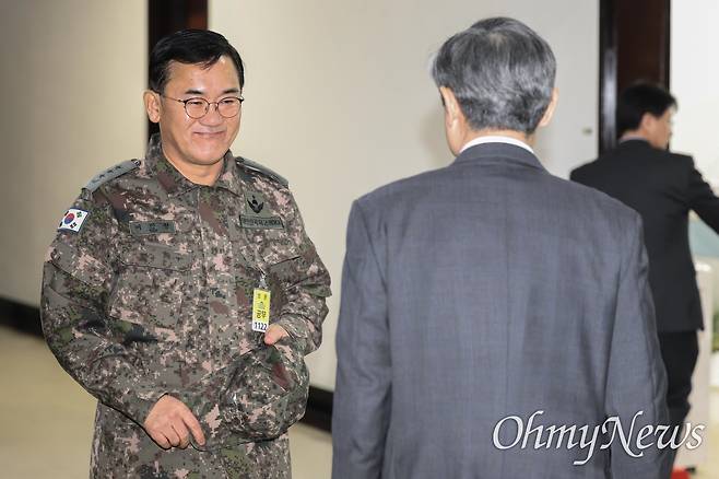 [오마이포토] '계엄 주도 의혹' 방첩사령관 웃으며 정보위 출석