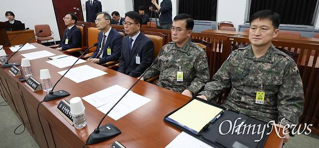 | ▲ 이경민 국군방첩사령관 직무대리(오른쪽 첫번째), 여인형 전 국군방첩사령관(오른쪽 두번째) 등 참석자들이 7일 국회 정보위원회에서 열린 비상계엄 관련 긴급 현안질의에서 회의 시작을 기다리고 있다. |