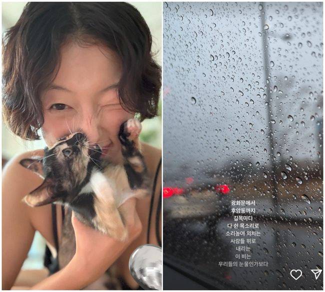 간접적으로 지지의 뜻을 표한 이들과 더불어 직접적으로 SNS에 글을 올린 스타들도 있다. 먼저 이엘은 지난 5일 자신의 인스타그램에 "광화문에서 후암동까지 길목마다 다 쉰 목소리로 소리높여 외치는 사람들 위로 내리는 이 비는 우리들의 눈물인가 보다"라는 글을 올렸다.