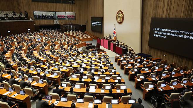 국민의힘, '김여사 특검법' 표결 뒤 퇴장…'윤 대통령 탄핵안' 표결 불참
