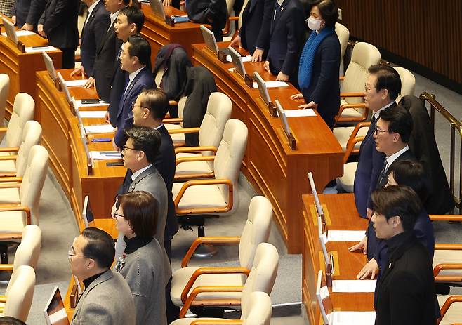 끝내 국민의힘은 안철수·김예지·김상욱(투표순) 의원을 제외하고 모두 탄핵안 표결에 불참했다. 우원식 국회의장은 이날 투표 종료선언을 미루면서 여당에 여러 번 참여를 독려했다. 그러나 국민의힘은 그 시간 동안 의원총회를 열어 둔 채 본회의장엔 입장하지 않았다.