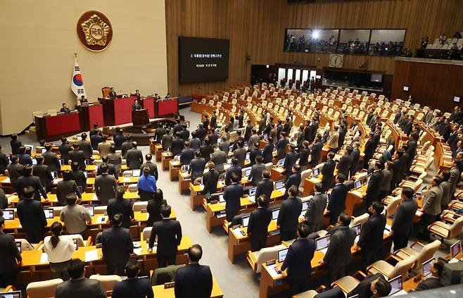 헌법상 대통령 탄핵안의 가결 요건은 '재적 의원 3분의 2 이상(200명) 찬성'이다. 범야권 의원 수는 192명. 안철수·김예지 의원과 '당론에 따라 반대투표를 했다'고 밝힌 김상욱 의원을 더해도 의결정족수를 달성하지 못한 것.