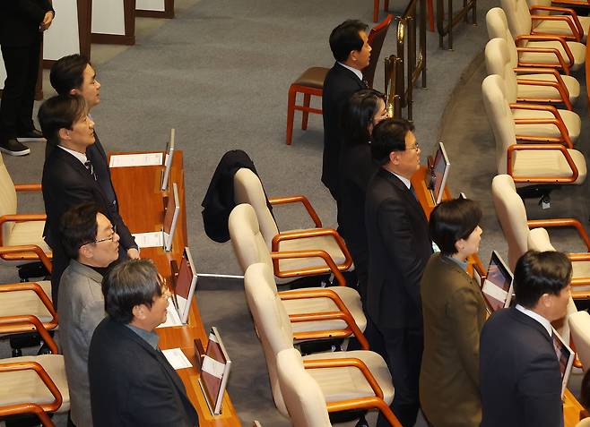 끝내 국민의힘은 안철수·김예지·김상욱(투표순) 의원을 제외하고 모두 탄핵안 표결에 불참했다.
