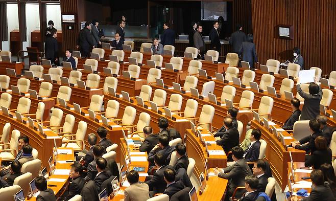 안철수·김예지 의원과 '당론에 따라 반대투표를 했다'고 밝힌 김상욱 의원을 더해도 의결정족수를 달성하지 못한 것.