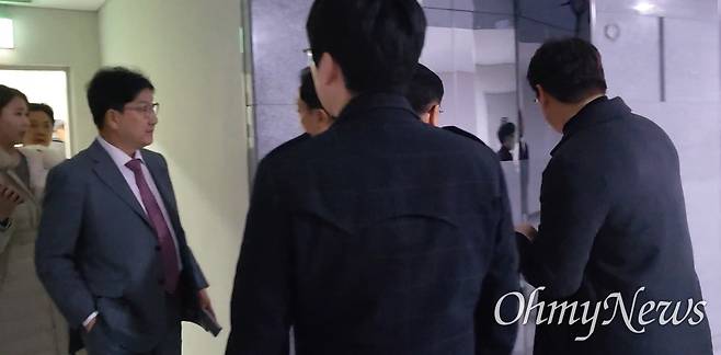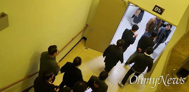 | ▲ 7일 대부분의 국민의힘 의원들은 당직자와 보좌진들의 경호를 받으며 국회 본청 2층이 정문이 아닌 경내 계단을 통해 1층과 지하 통로로 빠져나갔다. 사진은 권성동 의원이 지하 1층 엘리베이터를 타러 이동하는 모습. |