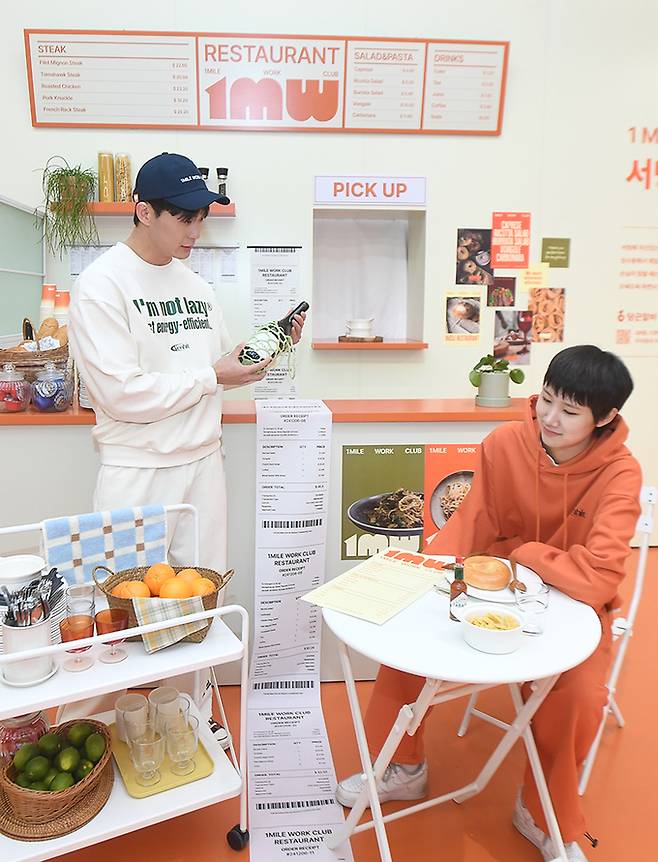 먼저, 동네에서 일하는 사람들의 업무 환경을 재현한 '원마일 워크존'은 간단한 짐 옮기기, 강아지 산책, 가게 서빙 알바 등 일상적인 동네 알바를 테마로 구성된 체험 공간이다. 산책 알바에 유용한 짐색(다용도 가방), 야외 짐 옮기기 알바에 유용한 패딩 목도리, 장갑 등 실제 동네 알바를 할 때 활용하기 좋은 아이템들이 함께 마련됐다. 방문객들은 실제 알바를 체험하는 듯한 재미를 느끼며, 포토존에서 특별한 추억을 남길 수 있다.