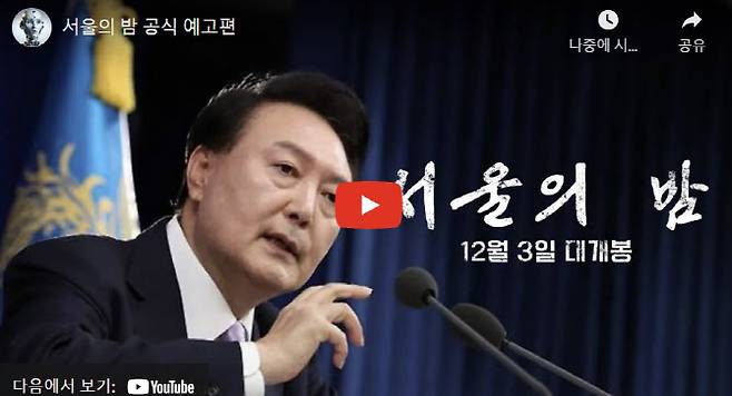 8일 IT 웹사이트 클리앙에 따르면, ‘서울의 밤 공식 예고편’ 영상이 올라와 큰 관심을 끌고 있다. 영상을 올린 네티즌은 “정권이 바뀌면 기막힌 작품들이 많이 나올 것 같다. 정말 작가, 감독들에게 많은 영감을 주고 있는 시대라고 생각한다”고 전했다. 해당 영상에는 ‘이 영상은 AI를 통해 제작되었습니다’라는 문구가 적혀 있다.